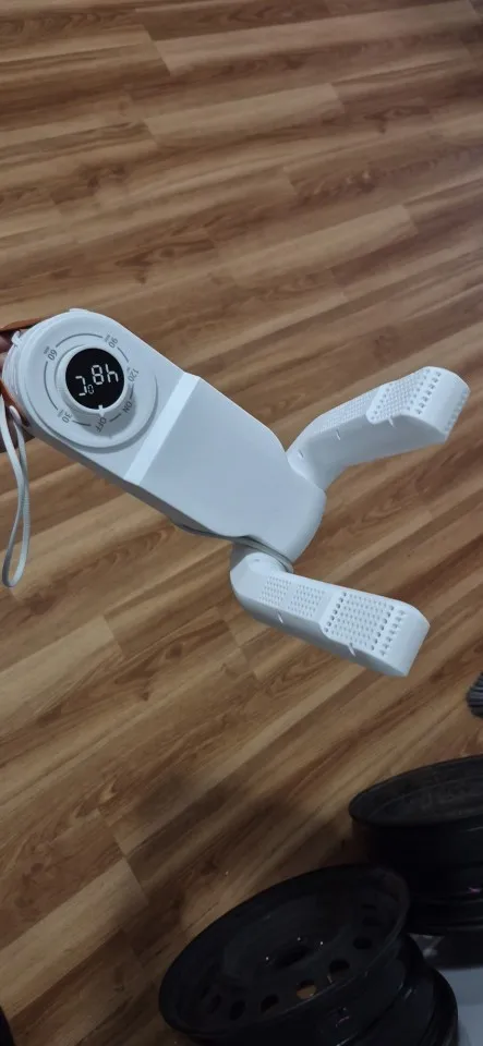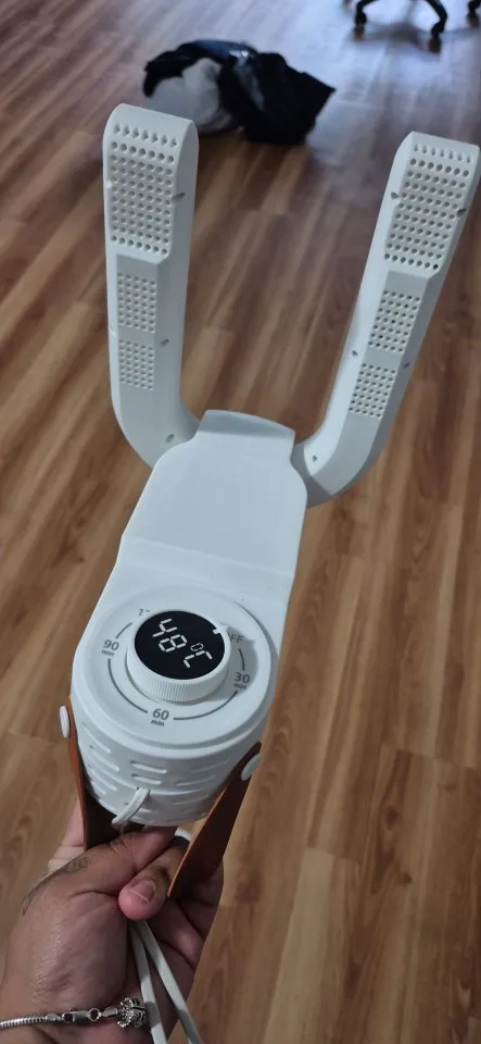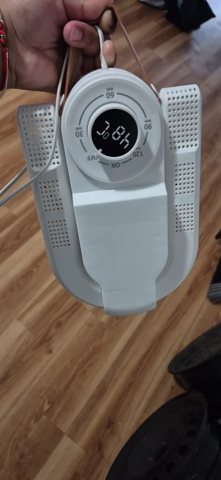 Por su precio, está bastante bien. En general, enciende y funciona bien en cuanto a secado. Todo depende de lo mojados que estén tus zapatos; si tus zapatos están completamente empapados por la lluvia, entonces debes encenderlo varias veces durante treinta minutos cada vez. Si tus pies están simplemente muy mojados, una vez durante treinta minutos es suficiente.